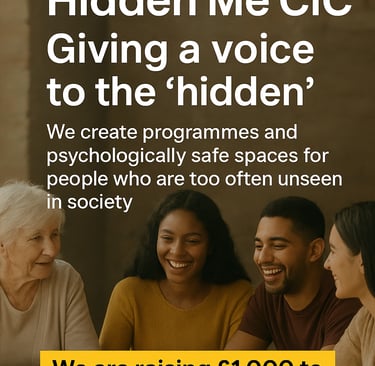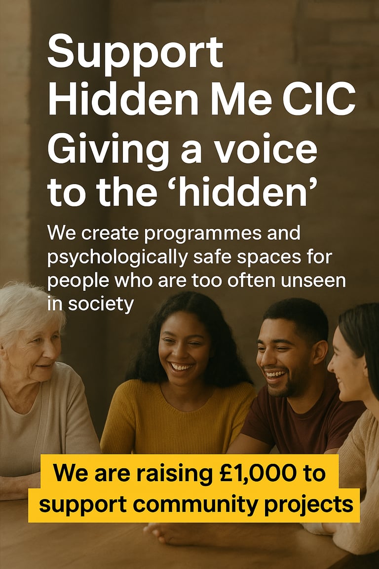 Hidden Me CIC is a community interest organisation dedicated to supporting individuals who often go unseen, unheard, or misunderstood. Empowering the unseen through community-driven initiatives.